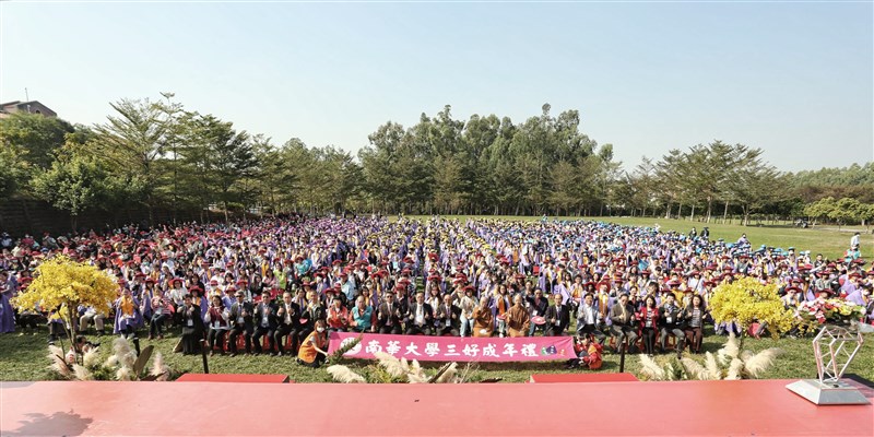 南華大學今天舉行成年禮儀式,近一千兩百位新生在家長與教師見證下,成為懂得為自己負責的成年人。圖/南華大學提供