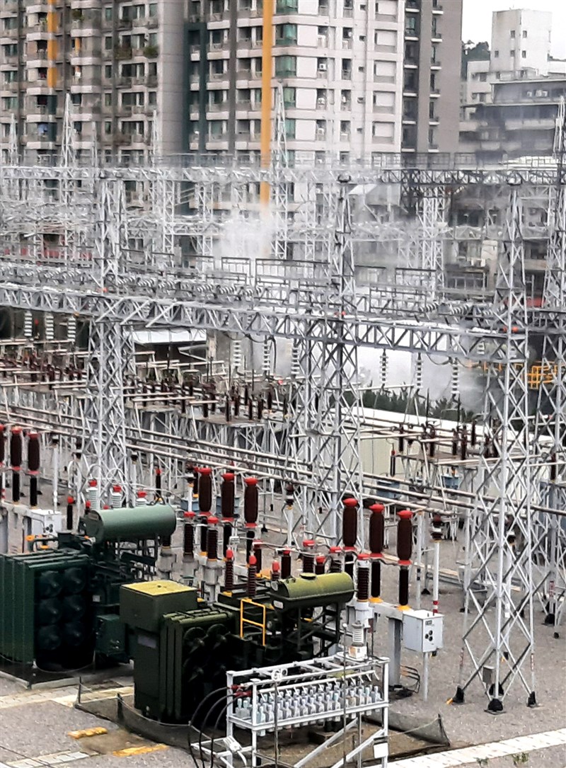 台電位於景隆街的萬隆變電所發出爆炸聲,現場變電箱起火。圖╱曾原信