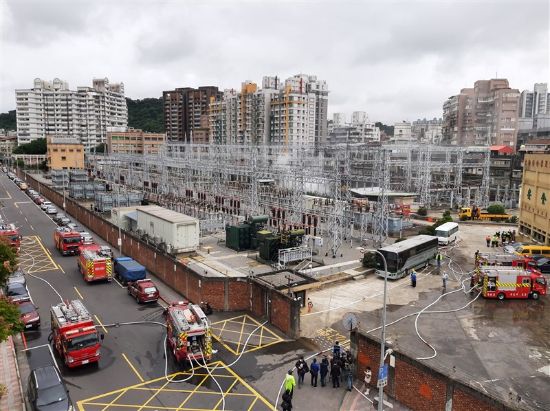 台電位於景隆街的萬隆變電所發出爆炸聲,現場變電箱起火,消防局出動消防車輛20輛、救護車輛2輛、人員57名趕往現場搶救。圖╱曾原信