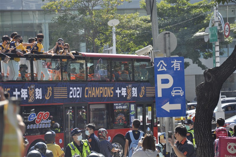 【記者張哲郢台中報導】中華職棒中信兄弟今天在台中舉辦首次封王遊行,陣中多數人都是遊行初體驗,隊長王威晨過程中不斷跟一旁詹子賢有說有笑,他說:「希望可以再來個10次好了,把目標定遠一點。」