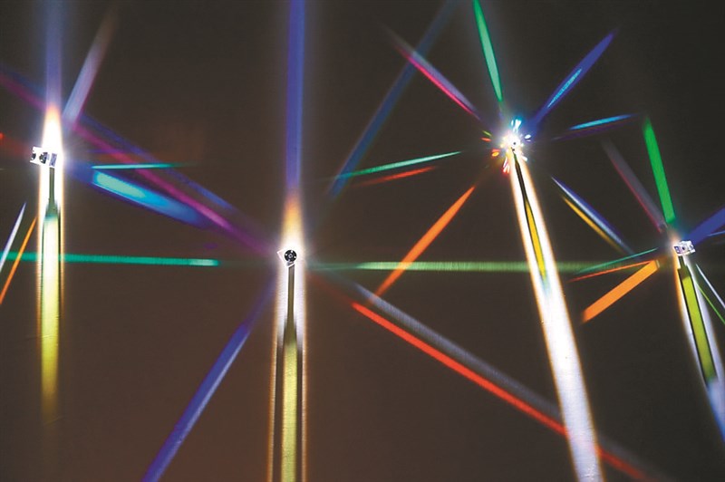 「看見光─光的奧妙趣味」知識牆,以簡潔的語言,描述物理的光、文學的光、照明史中的光等面向,擴展對光不同層次、層面的認識;藝術家蔡宜婷作品〈漫光〉,回應牛頓三稜鏡色散實驗,以相同造型、大小各異的分色稜鏡為媒介,搭配不同轉速的動力裝置,使稜鏡旋轉呈現不同的色散效果,相互折射映照,顯現時間在色彩中流變;莊志維作品〈我們〉利用鏡子,示範光的反射原理。