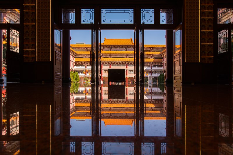 佛光山金光明寺位於新北市三峽區,環境清幽,內部空間規畫多元,是都市人沉澱心靈的好去處。圖/佛光山金光明寺提供