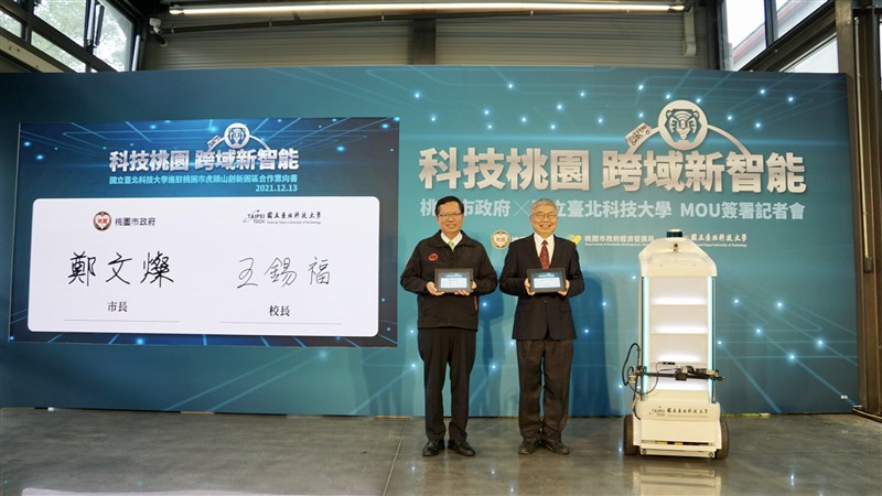 【記者曾博群台北報導】北科大與桃園市政府今(13)日於虎頭山創新園區簽署合作備忘錄,由北科大校長王錫福與桃園市市長鄭文燦代表簽約,宣布共同發展「科技桃園、跨域新智能」人才培育與未來科技新視界。鄭文燦表示,期待引入北科大的創新研發能量,為桃園地區的智慧產業和前瞻科技產業汲取更多各方資源,在產官學研合作下聯手打造桃園自駕車產業鏈,朝虎頭山創新園區成為自駕車、資安聯網技術之國家級實驗室目標邁進