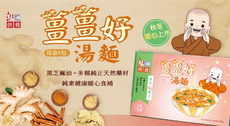 薑薑好湯麵 暖身暖心好食補 |2021.12.15 語音朗讀 8235觀看次 字級 大 中 小 薑薑好湯麵,暖身暖心好食補。圖/人間福報數位部 影音拍攝剪輯/記者張睿杰、張穎容【記者楊旻芳台北報導】冬天來臨,增強免疫力和暖身祛寒是兩大養生重點,福報文化「福供養」系列推出第4款冬令好物「薑薑好湯麵」,加入薑、黑麻油、多種純正中藥材,打造健康食補,能抑制體內發炎、改善虛寒體質,陪伴大家度過暖身又暖心的冬天。薑薑好湯麵加入老薑、麻油、多種中藥材,配合食補滋潤身體,達到體內的平衡。圖/記者張睿杰冬天氣溫低身體容易虛寒,東方人喜歡根據時令「食補」來強身健體,透過飲食的方式達到體內的平衡,薑薑好湯麵內含老薑、麻油、中藥等食補食材,可以促進血液循環溫暖身體。薑辣素 預防感冒 促進血液循環溫暖身體薑被證實具有預防感冒、止痛、止偏頭痛的功效,還含有維生素C、鎂、磷、鉀、鋅等多種營養素。薑被證實具有預防感冒、止痛、止偏頭痛的功效。圖/123RF其中薑所含的薑辣素,對消化及循環的停滯具有調節的作用,可促進體內的新陳代謝,能改善手腳冰冷、畏寒等循環不良症狀。同時,薑作用於體內具有暖和臟腑的功效,並藉由排汗的方式,幫助身體釋放毒素,同時也能促進皮膚及末梢神經的循環。日本健康專欄作家相馬佳也表示,平時多食用生薑有益於預防流感,改善發炎、提高血液循環,也能改善肌膚狀況,可說是由內而外的護理。黑芝麻補養 保護心血管、潤滑腸道薑薑好湯麵加入黑芝麻油香味提升營養更加分,芝麻富含維生素E、單不飽和脂肪酸,不僅可以清除體內自由基,讓皮膚白皙透亮,更可以有保護心血管並且潤滑腸道的功能。根據《神農本草經》的紀錄:「黑芝麻氣味甘平無毒,主傷中虛羸,補五內,益氣力,長肌肉,填腦髓。」黑芝麻對於補養身體、增加代謝有很好的幫助。除了老薑、黑芝麻油,薑薑好湯麵使用藥膳調味,加入純正中藥材桂皮、當歸、川芎、熟地、蔘鬚、黃耆,湯頭香濃又好喝。黑芝麻對於補養身體、增加代謝有很好的幫助。圖/123RF在季節交替在湯麵裡可加入菇類,無論是香菇、袖珍菇、美白菇、金針菇、黑木耳等,有豐富的多醣體,能增強免疫力,能對達到強身能效果。日晒黃金蕎麥麵體 Q彈健康有飽足感《人間福報》副總經理陳世晉指出,麵條採用天然食材,成分單純,以麵粉以及有「五穀雜糧之王」之稱的苦蕎麥(黃金蕎麥),苦蕎麥身形跟芝麻大小差不多,有益於生理機能調節,促進健康。再搭配台灣優質山藥製成,無添加任何防腐劑,半手工製造,低溫處理,經自然日晒風乾,長時間熟成,口感Q彈滑順。採用常溫保存,不占冰箱空間,想吃一碗暖身的湯麵,只要快煮6分鐘就能輕鬆上桌。陳世晉表示,使用日晒是賦予麵條「靈魂」的關鍵,能讓麵條緩慢地脫水,久煮不爛,創造出獨特的筋度口感,也讓無防腐劑的麵條更好保存。因為麵條本身帶有苦蕎麥成分,吃起來更有飽足感。薑薑好湯麵,寒冬裡暖身又暖心,常溫保存不占冰箱空間,6分鐘即可輕鬆端上桌享用。圖/記者張穎容6分鐘快煮 方便快速烹調方式,在鍋內加入500cc的水(約2碗半水)後,以大火加熱煮沸,即可投入麵條,計時3分鐘(加熱過程需攪拌麵條)後,再加入調味醬包及自己喜歡的青菜配料,大火快煮3分鐘,一碗麵就能輕鬆上桌。環保包材減少垃圾量 福報購全館免運優惠薑薑好湯麵的包材使用簡單的紙盒,捨去塑膠盒減少包材,福報文化希望能行三好理念與地球共好,對環境保護盡一份力量。目前在福報購電商平台熱賣中,全館不限金額享免運優惠。薑薑好湯麵,暖身暖心好食補。圖/人間福報數位部點我看更多【福報購電商平台】 前一篇文章 中職/官大元申請FA 兄弟給予尊重 下一篇文章 蔬果作畫 課輔班孩子靠創意拿2萬獎學金 熱門新聞 01南華大學茶禪雅集 靜坐書寫時光膠囊2026.03.2602星雲大師靈骨分燈歐洲 傳燈萬方2026.03.2603佛光山365日越文版 贈西貢日航大酒店2026.03.2704【詩】白花鬼2026.03.2505紅綠葡萄抗氧化抗發炎 連皮吃獲取健康全效益2026.03.2706台灣工藝3專書 呈現文化獨特樣貌2026.03.2707中職37年 明大巨蛋開幕戰2026.03.2708兒童節禮物 新北學生自己票選2026.03.2609北京中學老師 精準預言美伊開戰2026.03.2610伊朗設安全走廊 陸船復航荷莫茲2026.03.25 訂閱電子報 台北市 天氣預報 台灣一週天氣預報 相關報導 景氣分數衝高 燈號連3紅8萬小草力挺 柯:我不投降 718億新興計畫預算 政院不動 能源漲價 央行逐季檢視通膨京華城案 柯文哲重判17年台東實彈操演 美技術人員在場