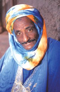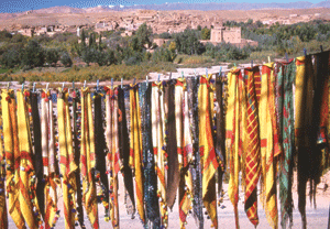 位在摩洛哥Todra Gorges的貝都因村落,商業交易活動頻繁,貝都因商人的裝扮不同於一身白的遊牧族人,而是裹著染上藍、橘鮮艷色彩的頭巾,衣領上有來自村落裡的精緻手工刺繡,由此窺見貝都因人與生俱來的藝術才能。