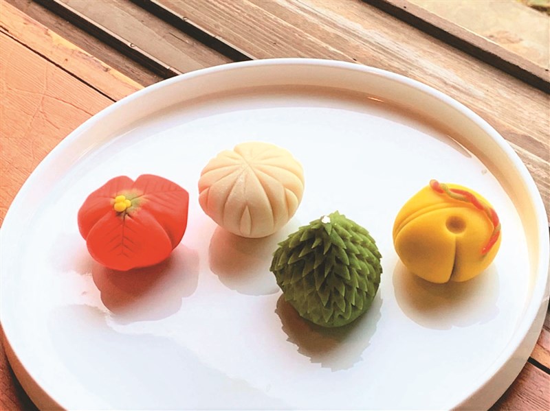 邱秀熒的和菓子展現日本歲時風情,雅緻的名字、精巧的外表、豐富的色彩,並且以不同的素材,展現不同季節感,享受視覺和味覺的雙重體驗。