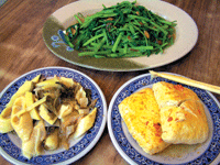 顧心妤在木柵開小吃店已十五年,臭豆腐、炒空心菜和筍絲是遠