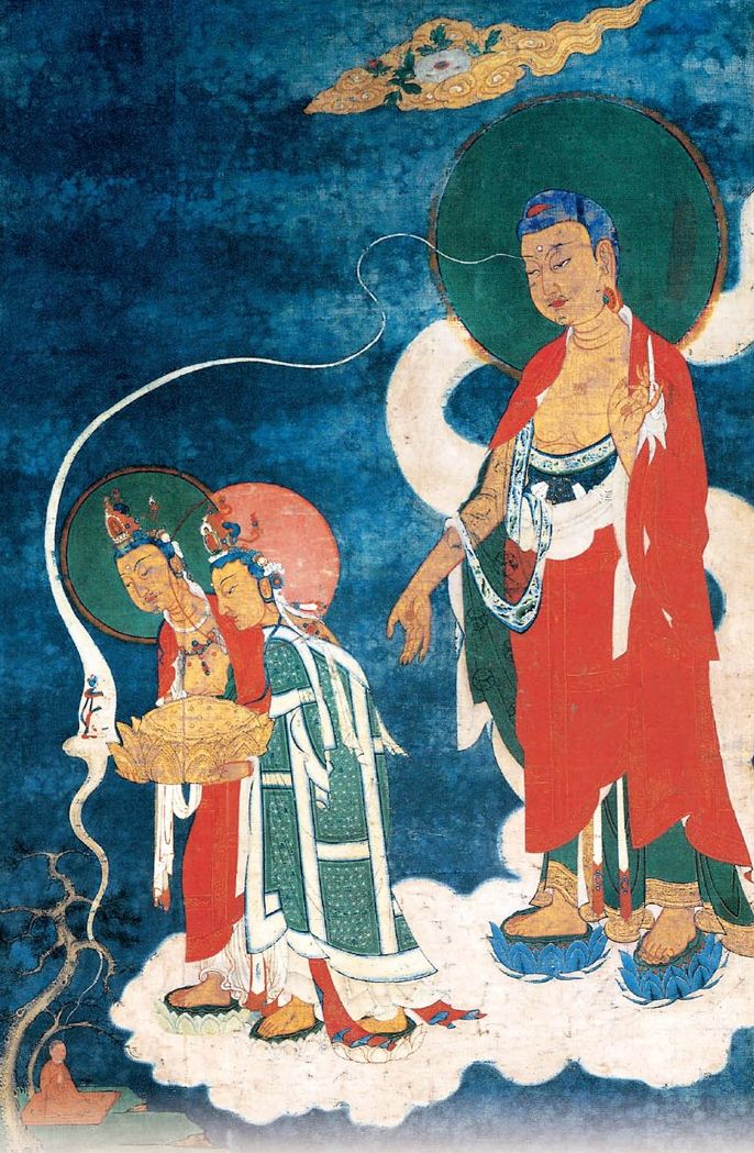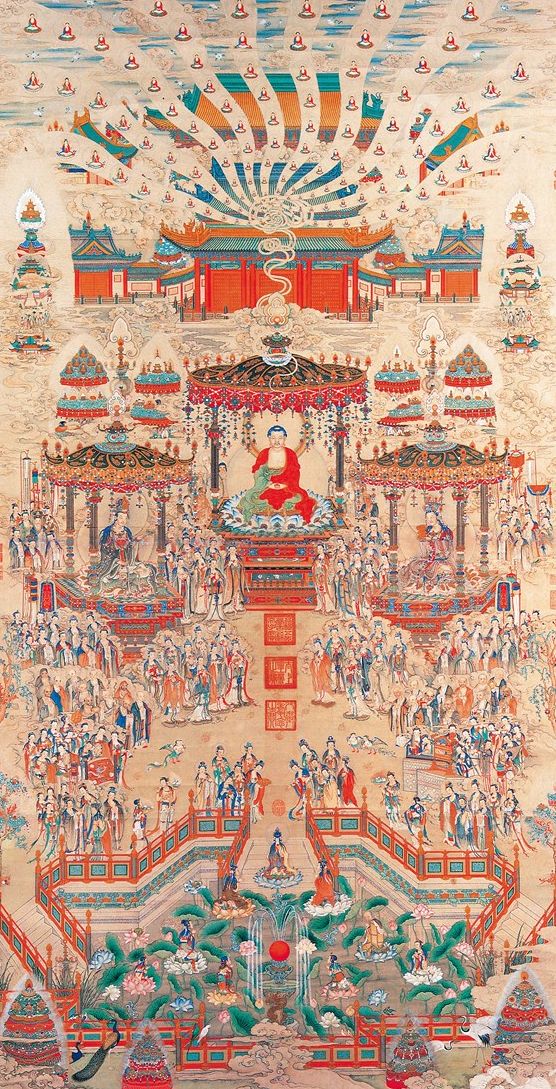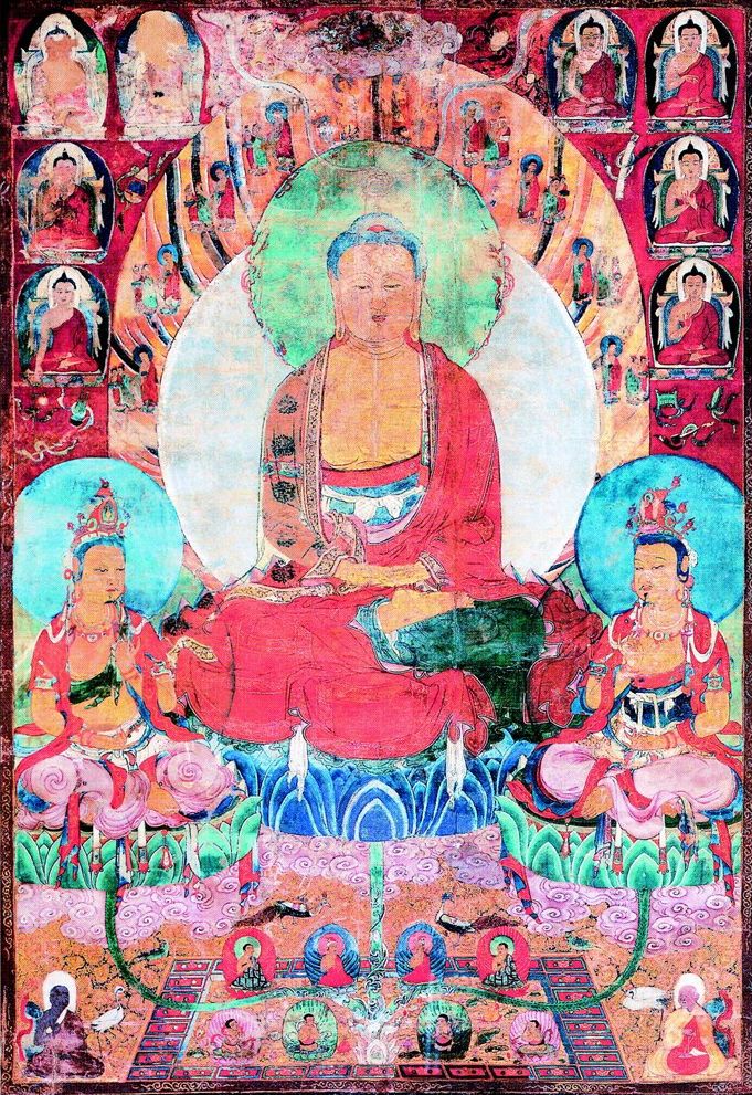 【彌陀聖誕】 念念彌陀 無量光、無量壽 |2021.12.20 語音朗讀 17405觀看次 字級 大 中 小 山越阿彌陀佛圖,鎌倉時代(1185~1333)╱絹本設色╱高120.6公分寬80.3公分╱日本京都東山京都國立博物館保管。圖/世界佛教美術圖說大辭典提供 【本報綜合報導】「家家彌陀佛,戶戶觀世音」,自古以來,阿彌陀佛的淨土思想深入民心,信仰殊勝普及。阿彌陀佛真有其人嗎?極樂世界是什麼景象?誰可以去淨土,又要如何去?世人又如何得知今天(20日)是農曆11月17日,就是阿彌陀佛的聖誕?在大乘佛教的觀念中,認為有無數的佛和淨土,在每個佛淨土中,都有一位佛作為教主,並以此淨土為教化的世界,西方極樂世界的教主就是阿彌陀佛。阿彌陀佛梵名Amita-buddha。「阿彌陀」,意譯無量光、無量壽。阿彌陀佛的本生是法藏比丘,於世自在王如來時,原為一國王,聞佛說法,心懷喜悅,於是發無上道心,棄捐王位,出家作沙門,高才果決明智,與世超異。後聞世自在王佛為其廣說210億諸佛剎土天人的善惡,國土的粗妙,應其心願,悉現與之,而起發無上殊勝之願,於5劫中攝210億諸佛妙土清淨之行,如是修行已,至佛前發48大願,願度脫一切眾生,以無量的悲願功德,展現極樂世界。阿彌陀佛接引圖╱西夏╱內蒙古自治區阿拉善盟額濟納旗黑水城出土╱艾爾米塔什國家博物館藏。圖/世界佛教美術圖說大辭典彌陀淨土法門 殊勝普及彌陀淨土法門的修持方法,如《阿彌陀經》所云:「不可以少善根、福德、因緣得生彼國」。經中也說道,如果用1天乃至7天的時間持名念佛,而能念到一心不亂,即能往生極樂世界。極樂淨土的居住群眾,是三根普被,不論出家、在家,只要合乎條件,就有移民往生的資格。即使帶業往生,在極樂淨土裡修學,不論時間多長,也一定能成就無上菩提;這是彌陀淨土最為殊勝之處。農曆11月17日是阿彌陀佛的聖誕由來,跟唐末五代永明延壽禪師有關。莫高窟第220窟阿彌陀淨土變相圖,圖中央的無量壽佛結跏趺坐於蓮花寶座上,觀世音、大勢至分列左右,聖眾圍繞聆聽法音。圖/世界佛教美術圖說大辭典延壽禪師在當時深受吳越王錢俶的禮敬,尊奉他為國師。一日,吳越王設齋供養千僧,席中設有上座,就在大眾都推辭不坐時,來了一位長耳和尚自然大方就坐上首席。宴席結束,吳越王問永明禪師:「今天有聖人來應供嗎?」永明禪師說:「定光古佛來了,即坐在首席的長耳和尚。」吳越王聽了非常歡喜,趕緊派人去禮請。官員找到長耳和尚在一個山洞裡修行,於是頂禮膜拜,請他到皇宮裡面來供養。長耳和尚說了一句:「彌陀饒舌!」即圓寂了。官員趕回宮中報告,「定光古佛走了,阿彌陀佛還在。」吳越王聽到定光佛圓寂的消息,當然很失望,但知道永明禪師是阿彌陀佛,歡喜得不得了,趕去相見,就在此時接到通報,「永明禪師圓寂了。」阿彌陀佛以永明延壽禪師示現世間,後來就將永明延壽禪師的生辰11月17日,作為阿彌陀佛的聖誕。於是寺院在此時間前後,舉辦彌陀佛七,與阿彌陀佛「淨念相繼」。佛門裡有所謂「打禪七」、「打佛七」的修行功課,或簡稱「打七」,以7天為一期,為了剋期取證,也意味著打去第七識的我執。阿彌陀佛淨土圖,此圖表現西方極樂世界之清淨莊嚴,主尊阿彌陀佛、觀世音及大勢至菩薩皆坐於蓮座上。圖╱世界佛教美術圖說大辭典隨意所欲 應念即至在無限量的宇宙中,依據我們所住的世界,日出日落的方向觀念,指說極樂世界為日落處西方。極樂世界是淨土,西方極樂世界的樣貌就是淨土生活。所謂「極樂」,就是《阿彌陀經》所說:「其國眾生,無有眾苦,但受諸樂,故名極樂。」在極樂淨土,所有的民眾,都是蓮花化生,不須為生活操勞,為經濟鑽營,思衣得衣,思食得食;建築富麗堂皇,隨意所欲,應念即至;眾生在時空無限的世界裡,飛行自在,來去自如。極樂國土自然景觀美好,處處可見清淨的流水、盛開的百花及無數寶樹。當微風吹動,寶樹便發出微妙的聲音,就像千百種樂器同時奏響美妙音符;隨處可見種種奇妙之鳥,發出和悅優雅的聲音,演說著種種佛法妙理。極樂國土的眾生,聽到眾鳥宣說的種種妙法,自然生起念佛、念法、念僧之心。這些鳥都是阿彌陀佛為了讓極樂國土的眾生聽聞正法,修習菩提,得無上正等正覺,特別以願力變化而作的,因為在極樂世界尚無惡道之名,更不會有惡道之實。平等院阿彌陀佛坐像。佛結跏趺坐於八重蓮台上,手結上品上生印。方蓋周緣垂掛卷草寶簾,襯托出絢爛華麗的氣勢。圖╱世界佛教美術圖說大辭典奉行三好 累積淨土資糧在娑婆世界,不論我們是富貴、貧賤、聰明、愚笨,只要人人欣慕極樂世界,願生極樂淨土,稱念彌陀聖號,人人都可生到極樂世界,就算罪業深重的人,只要他具備淨土三資糧──信、願、行,相信有阿彌陀佛、有極樂淨土;發願生到彼國;付諸行動修持稱念聖號,就能帶業往生極樂世界,是一個天下一家的世界。在極樂世界修行不會退轉,如《阿彌陀經》中所稱,「眾生生者,皆是阿鞞跋致。」此世界的人,都是諸上善人聚會一處,在良師益友的策勵下,都能不斷的向上,所以社會和樂而且非常殊勝。山越阿彌陀佛圖。圖中阿彌陀佛及臨終者以山嶺為分界,分別代表彼岸及此岸,佛從彼岸越過山嶺到達此岸,迎接臨終者往生極樂世界。圖╱世界佛教美術圖說大辭典《觀無量壽經》說明欲生西方極樂國土的眾生所必修的淨業正因,並以十六觀法諦觀阿