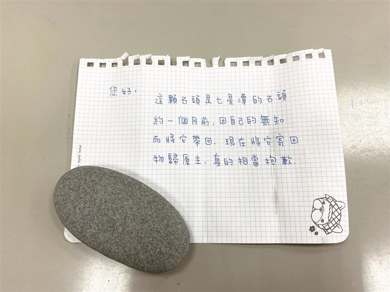 七星潭禁撿石 寄還致歉 |2021.12.22 語音朗讀 1649觀看次 字級 大 中 小 花蓮七星潭風景區海岸線遍布鵝卵石著名,縣府公告禁止撿石,日前花蓮市公所清潔隊收到一封「有重量」的信件,內有一顆鵝卵石,信中寫道,日前因無知而把七星潭石頭帶回,如今希望物歸原主,也表示相當抱歉。圖/中央社 花蓮七星潭風景區海岸線遍布鵝卵石著名,縣府公告禁止撿石,日前花蓮市公所清潔隊收到一封「有重量」的信件,內有一顆鵝卵石,信中寫道,日前因無知而把七星潭石頭帶回,如今希望物歸原主,也表示相當抱歉。圖/中央社 前一篇文章 冷氣團25日報到 高山有望追雪 下一篇文章 策略結盟 全聯、全家 電子支付通路共享 熱門新聞 01與精品品牌撞鞋 印度涼鞋打專利戰2025.12.2102銀杏點亮.東京印象2025.12.2303邂逅佛教 安頓身心2025.12.2104【動物奧斯卡獎】猜猜誰最會演(上)2025.12.2105北捷英雄捨身救人 母盼菩薩接引2025.12.2306【守護家人】 為愛築家2025.12.2307社論--瞋恨的危害2025.12.2108【佛教管理學②】人間佛教的「治心十法」⑩2025.12.2109數位科技與信仰交會 推播人間佛教文化2025.12.2210降噪耳機原理2025.12.22 訂閱電子報 台北市 天氣預報 台灣一週天氣預報 相關報導 雪山三六九山莊重建 尋求調解藍白推未來帳戶 拚立院本會期審議 淡水河畔 初冬小花海台東昨6.1地震 氣象署:恐有餘震金門大膽島 年度熱搜景點余家昶捨身救人 明年入祀桃園忠烈祠