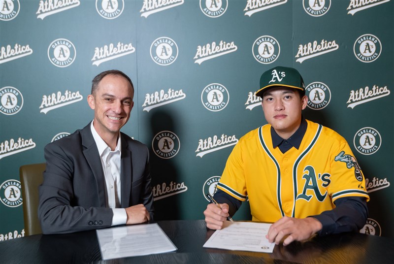 莊陳仲敖與奧克蘭運動家隊簽下合約,正式赴美挑戰大聯盟。圖/悍創運動經紀