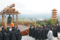 【人間社記者心默臥龍崗報導】「南天報恩鐘聲響,父母恩重重如山;願此鐘聲超法界,鐵圍幽暗悉皆聞;聞塵清淨證圓通,一切眾生成正覺。」澳洲南天寺「南天報恩鐘」,在澳紐地區總住持依來法師的叩鐘聲中正式啟用。渾厚悠揚的鐘聲伴著「無相頌」曲調唱誦的「叩鐘偈」,百餘位戒子及義工虔誠的祈福,祈願風調雨順,眾緣和諧。(人間社記者本馥攝)