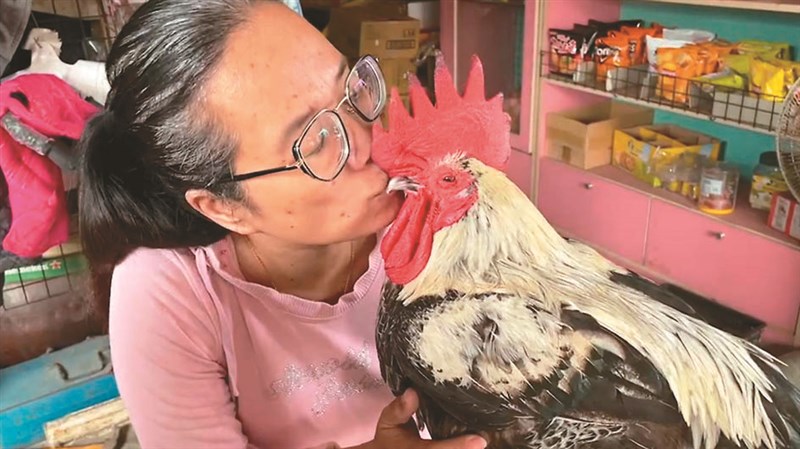 鄰居也都知道陳家有隻超逗趣寵物雞,到雜貨店買東西時也愛跟牠玩。