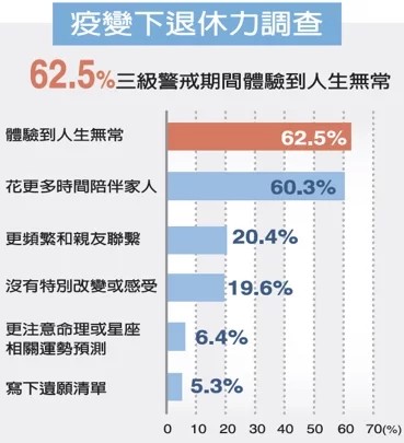 疫情帶來反思 理解生死超前部署退休生活 |2021.12.23 語音朗讀 1324觀看次 字級 大 中 小 退休族應尋找興趣,例如書籍、音樂或出遊,也可投身志工服務,找到自己的同好。圖/pixabay 【本報台北訊】病毒帶來了隔離,也無預警帶來死亡與離別,今年是許多人開始思考生命中的告別與獨立的一年。與人告別、單獨面對自己與生活,這過去幾乎是老年或退休階段才會遭遇的課題,如此疫情下提前反思,也是一種超前部署。根據聯合報與元氣網進行的「疫情下的退休力應變大調查」,三級警戒期間,6成的人體驗人生無常,大約百分之5寫下了遺願清單。坦然面對生命的悲歡離合與陰晴圓缺,「2021年退休力大調查」發現,75歲以上近7成準備了解生死、面對死亡,年紀愈長,愈能夠獨處而不感到孤單和寂寞。圖/聯合報圖/聯合報周日下午,台大文學院門口總聚集一群太極拳友,裡頭一位帶頭大哥被眾人笑稱「幫主」,他是66歲監察委員賴鼎銘,曾任兩所大學校長,如今退而不休,持續關注人權與媒體改革,更是學界知名太極拳高手。想自在 先理解自我需求賴鼎銘認為,追求「獨立自在」,得先理解自我需求。他舉例,享受美食和旅遊要花錢,就得認真儲蓄;若想買塊地下田,或投入運動,則要維持心肺與肌力,每種興趣都有不同的基礎。退休族應尋找興趣,例如書籍、音樂或出遊,也可投身志工服務。圖/取自網路「我看過很多老師剛退休,生活突然閒下來,還沒找到新的動力,短短幾年迅速衰弱,突然就走了。」眼見前車之鑑,賴鼎銘早早超前部屬,待退階段便開始規畫老年生活。面對自己,的確必須經過學習。長期研究人際關係的社會學家李明璁表示,台灣人長期以來只有工作和家庭,缺少足以形成「自我感」的「第三空間」,更沒有獨處習慣,一旦退休後,工作沒了,「就不知道自己是誰,以及自己還能夠是誰」,對退休生活產生巨大焦慮。尋同好 建立非功利社群李明璁分析,民國40至50年間出生的「新退休族」,雖成長於集體主義盛行的年代,但他們的自我認同感多建立在工作上。多年來專注工作,從他人眼中定義自己的成功或失敗,缺乏以自我認同為核心的社群,因此在退休後形成焦慮,「我能做什麼,要跟誰往來,以及活著的趣味是什麼?」他建議,退休族應尋找興趣,例如書籍、音樂或出遊,也可投身志工服務,找到自己的同好,建立起「非功利的社群」,這時往往會發現,退休生活其實仍大有可為,人生才正要精彩開始。退休族應提早做好退休規畫。圖/取自網路旅居日本,在當地長照機構服務多年的何蕙君觀察,台灣社會普遍認為「老人需要照顧」,日本則以「協助老人實現其理想人生」為軸心。何蕙君表示,日本身為高齡化與福利大國,不斷進步的原因來自「團塊世代」,這群現年70歲上下的退休族,對傳統觀念帶來衝擊。團塊世代在急速西化、經濟起飛的環境下成長,教育和儲蓄資本更高,因此改變了日本社會對「老後生活」的想像,早台灣一個世代開始重視獨立自主。長照是 互相幫忙與尊重當代平均壽命超過80歲,前30年努力學習,直到卸下工作,許多退休族才驚覺,社會變動竟如此快速。何蕙君說,長者容易「害怕跟不上潮流,不想被丟下」,這是人之常情,若「互助、學到老、重視自我」等新觀念漸成社會共識,當年輕人老去,換下一代需要被照護時,就不會看輕自己。在何蕙君心中,長照就是互相幫忙、互相尊重。 前一篇文章 新聞千里眼 下一篇文章 別輕忽累喘腫症狀 小心心臟衰竭冬季奪命 熱門新聞 01與精品品牌撞鞋 印度涼鞋打專利戰2025.12.2102佛光山高雄佛教堂 營建工地評鑑特優2025.12.1903太陽瓶燈泡 點亮貧困家庭希望 2025.12.1904邂逅佛教 安頓身心2025.12.2105【時光重逢】花宅海邊美術館2025.12.1906銀杏點亮.東京印象2025.12.2307北島佛光山獲四星肯定 園林躍升具重要意義庭園2025.12.1908【動物奧斯卡獎】猜猜誰最會演(上)2025.12.2109日球星率道奇連霸 2025體壇最驚奇 2025.12.1910社論--瞋恨的危害2025.12.21 訂閱電子報 台北市 天氣預報 台灣一週天氣預報 相關報導 最強戰車上街頭 M1A2T首次戰備偵巡中選會主委 政院提名游盈隆鄭麗文訪佛光山 找到歡喜信心全台首座螺旋圓環憲訴法修正案 憲法法庭判違憲吳豊山辭海基會董座 賴聘任資政