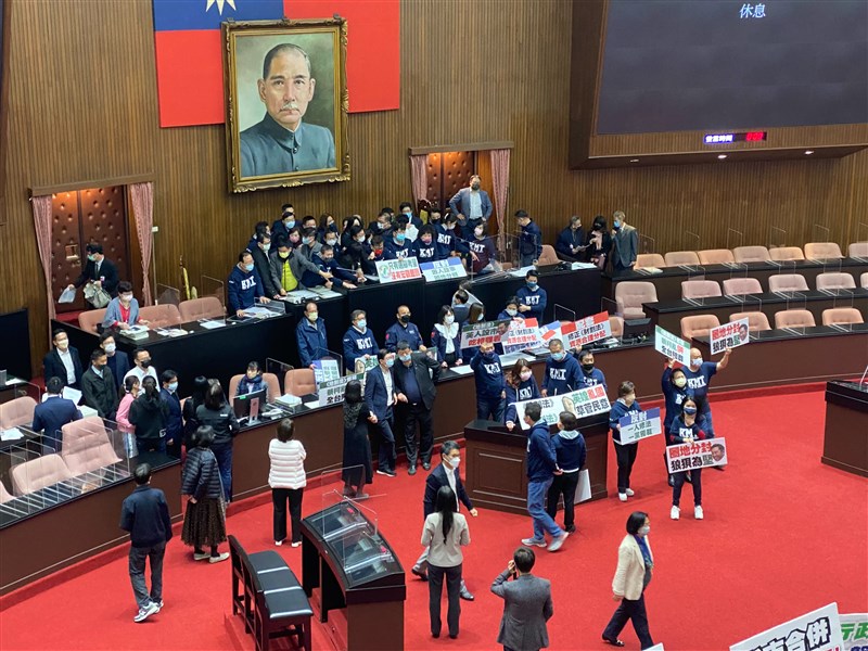 國民黨立委江啟臣也秀出民進黨團的提案,地制法修法草案列入報告事項後,民進黨團又擬請院會逕付二讀,由民進黨團召集協商;國民黨立委林為洲批評,昨天朝野協商,才讓總預算案回歸實質審查,民進黨現在又要突襲,推地制法修法,「今天是平安夜,難道是怕台灣沒事幹?」