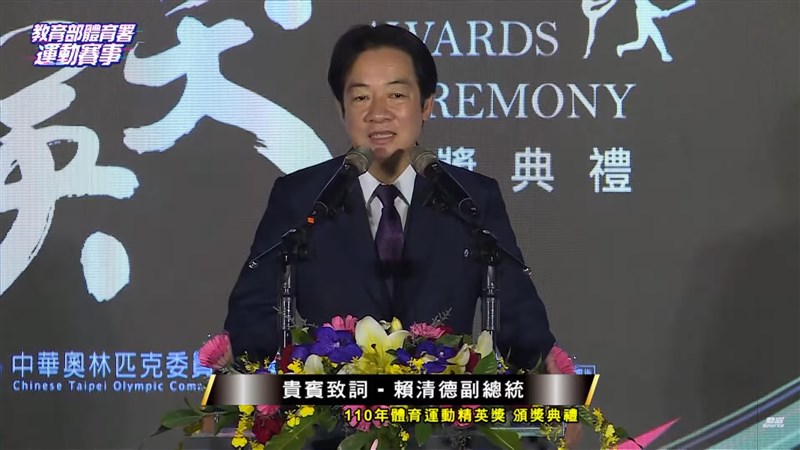 賴清德出席運動精英獎頒獎典禮並擔任頒獎嘉賓。圖/取自轉播畫面