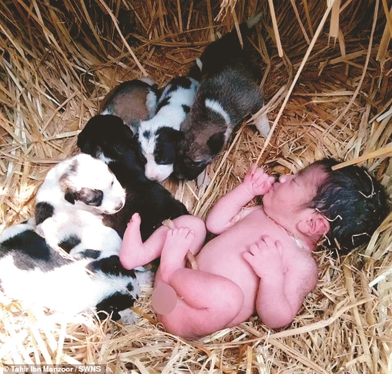 奇特的是,這名女嬰身邊圍著1隻母狗和7隻小狗,女嬰身上沒有任何傷痕。村民們認為是母狗和小狗在保護她。