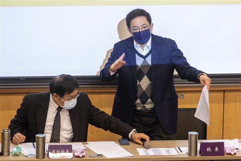今天校務會議一開始由校長管中閔宣布開會,但因須迴避遴選下一任校長事宜,馬上就將會議主持棒交由副校長羅清華,隨後主導逐條討論修正案。