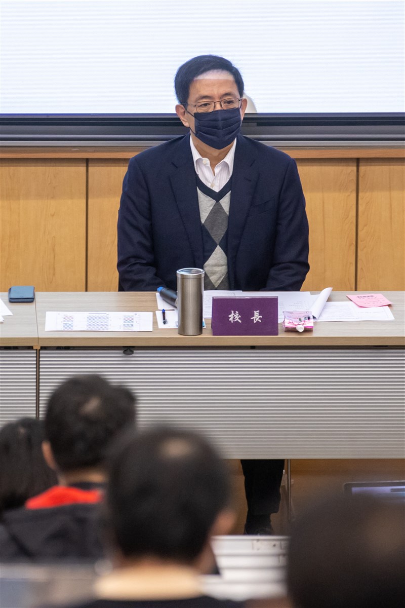 台大臨時校務會議討論修正「校長遴選委員會組織及運作要點」草案,校長管中閔以利益迴避為由,宣布議案後即離席,改由副校長羅清華主持會議。圖╱季相儒