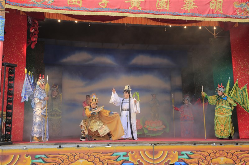 除了各式陣頭表演之外,明華園也在菩提廣場演出〈觀音收大鵬鳥〉傳統歌仔戲,戲碼講述宋仁宗微服出巡,探訪民情,先後遇上法力高強的狐狸精,以及從天庭下凡歷練的大鵬鳥和宋仁宗的故事。