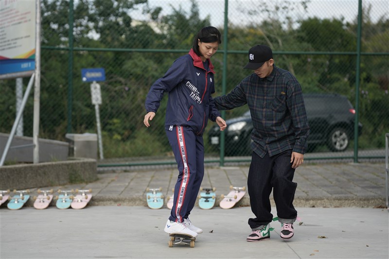 滑板好手柯家恩則帶著一身絕技前來,他除小秀一手,還指導吳詩儀基礎技巧,他笑說:「詩儀學得很快,運動細胞很好。」他強調,滑板目前是奧運賽事,很感謝有這機會能推廣滑板,未來會更努力宣傳滑板可看性,吸引更多人參與。