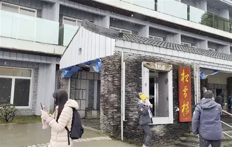 今天上午8時許,合歡山氣溫一度降至0度左右,短暫冰霰夾雪花,但因當時溼度不足,並未持續太久,之後偶有冰霰,松雪樓員工也拍降雪狀況並指出,今晨一波下雪僅維持1、2分鐘,但現場民眾都很開心,紛拿手機拍攝紀錄。