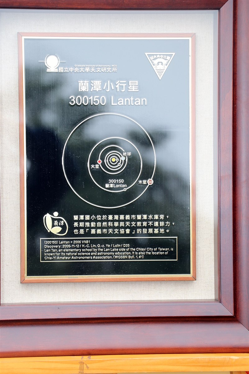 中央大學鹿林天文台今年發現三顆小行星,校方特別將其中編號300150小行星命名為「蘭潭」,中大校長周景揚並前來蘭潭國小,頒贈「蘭潭小行星」銘板。中大表示,未來會繼續與蘭潭國小合作,深耕天文教育,希望點亮更多學子對天文的熱情。