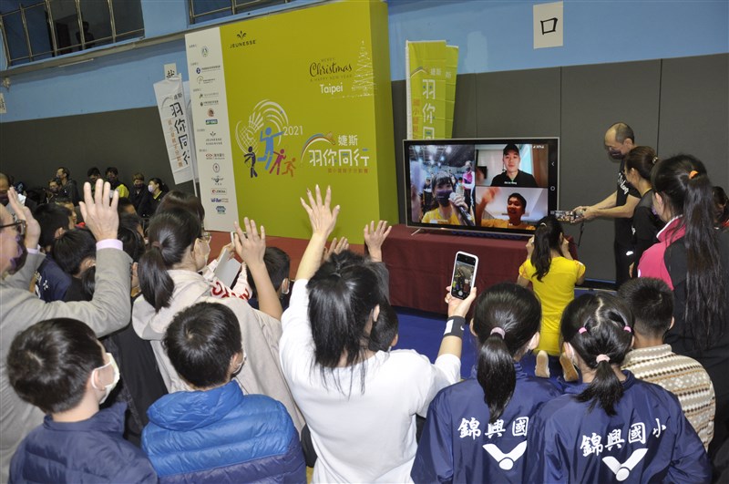 【記者張哲郢台北報導】2021婕斯羽你同型國小暨親子分齡賽今天在台北體育館登場,並舉辦贈拍活動,小朋友看到隔離中的奧運金牌男雙麟洋配李洋/王齊麟連線視訊,全擠上螢幕前要跟偶像揮手打招呼。
