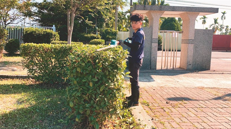 高國偉分享,除草完成後會有一股成就感,原本雜亂的環境,在他們修剪下,變得乾淨整潔;楊翊說,除草打工學習到課堂上學不到內容,遇到難題也會試著尋找解方;黃鈞弘表示,學校課程曾教導修剪樹枝時,如何判斷樹枝條好壞,有時業主想修剪樹木,他能發揮所學專業,保留好枝條、修掉不好的,讓樹木更健康。