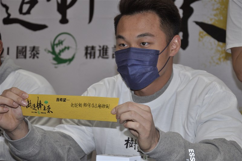 王柏融寫下自我期許,希望明年可以有更多機會證明給監督看。圖/記者張哲郢