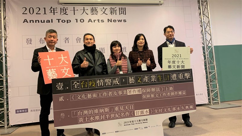 【記者曹麗蕙台北報導】由台北藝術大學藝術行政與管理研究所主辦的「2021年度十大藝文新聞」票選活動,投票結果在今(27)日揭曉,「全台疫情警戒,藝文產業生計遭重擊」獲最高票奪冠,二、三名分別為《文化藝術工作者及業著作權保障辦法》上路,以及黃土水《甘露水》重見天日。