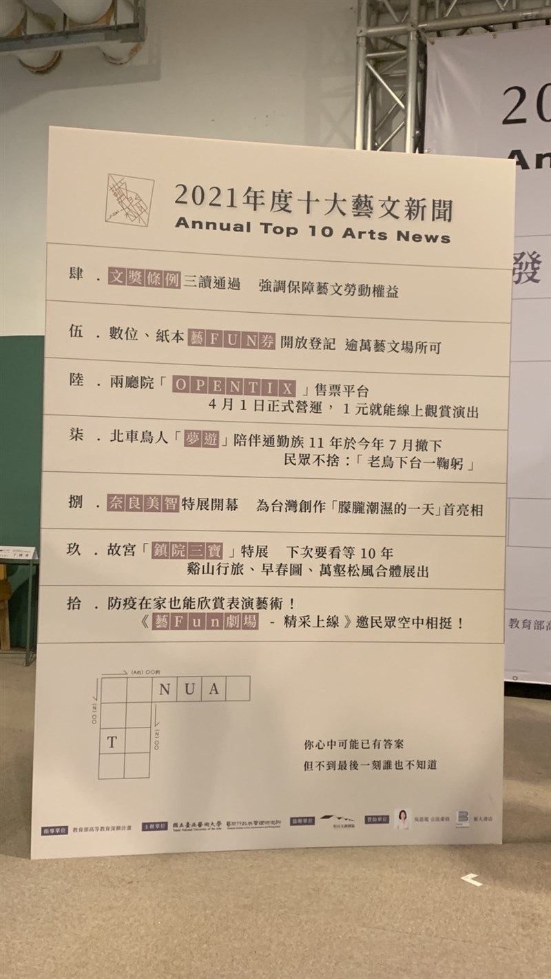 值得一提的是,疫情自2019年底影響台灣,今年的十大新聞中有三則均與疫情相關,其中2020年文化部推出的「藝Fun券」榮登去年十大藝文新聞榜首,今年「藝Fun券」仍受關注,列為第五名。