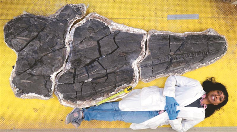 美國內華達州近日發現史前巨大魚龍,考古學家在距今約二點四億年前的三疊紀中期地層中,發現新型巨大魚龍化石,光是其頭骨就達近二公尺,比一般人還長,估計體型約有十七公尺左右,是當時最大的動物。這隻新型魚龍被命名為「Yangorum」,來自挖掘調查工作者的名字。圖/取自網路