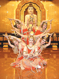 大覺寺學員精采的敦煌舞蹈表演,觀眾大開眼界。(人間社記者彭日鏡攝)