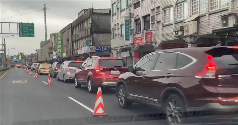元旦連假第一天,蘇花改南端入口回堵4公里,塞到蘇澳市區,車流走走停停。圖╱讀者提供
