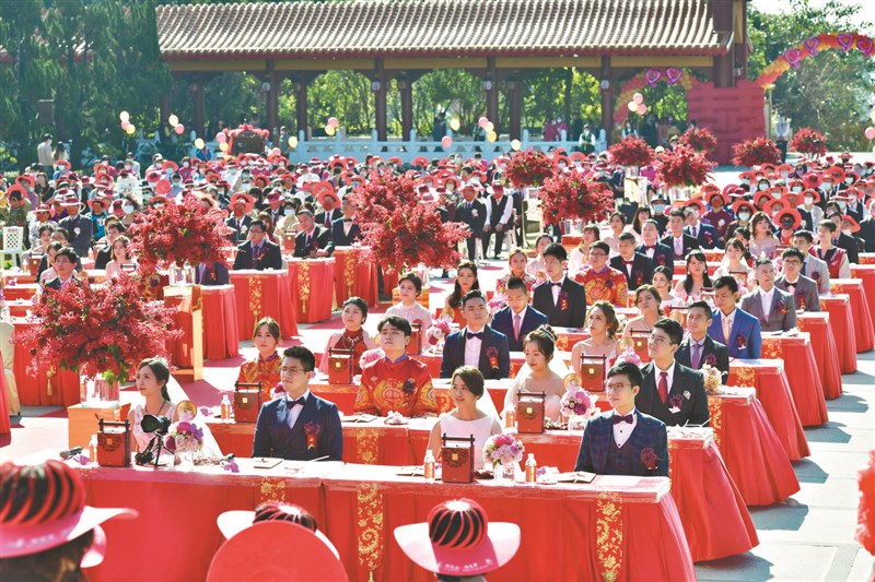 佛化婚禮 千人見證永結同心 人間社記者陳德啟大樹報導 |2022.01.02 語音朗讀 2791觀看次 字級 大 中 小 吳伯雄(左)、戴美玉伉儷分享菩提眷屬是最好的榜樣,並以歌曲唱出夫妻相處之道。圖/人間社記者蔡忠宏心保和尚證婚,勉勵眾新人互相尊重包容。圖/人間社記者莊美昭 「2022年百年好合‧佛化婚禮暨菩提眷屬祝福禮」現場逾千人共同見證近40對新人永結同心、善緣好運、百年好合的幸福婚姻。圖/人間社記者莊美昭 【人間社記者陳德啟大樹報導】國際佛光會中華總會三十周年系列活動「二○二二年百年好合‧佛化婚禮暨菩提眷屬祝福禮」於一月一日元旦在佛光山大雄寶殿舉行。佛光山住持心保和尚擔任證婚人,主婚人由國際佛光會榮譽總會長吳伯雄、戴美玉伉儷擔任,介紹人是國際佛光會世界總會副總會長劉招明伉儷。佛化婚禮由新人謝源一、張皓瑋代表宣讀結婚證書,菩提眷屬由國際佛光會世界總會理事曾文宏、邱美艷伉儷等代表宣讀誓願文,現場逾千人共同見證永結同心、善緣好運、百年好合的幸福婚姻。古裝花童 領新人走紅毯此次共有新人三十八對、菩提眷屬一百一十五對,值得一提的是,佛光青年團有十對參與;菩提眷屬中,頭份造橋分會的吳焜金和吳羅龍妹、台南中區第一分會的吳永吉和吳黃勝代、北區忠孝第二分會任在田、任黃金鳳都是鑽石婚(六十周年),此外,金婚(五十周年)有七對、紅寶石婚(四十周年)三十四對、珍珠婚(三十周年)三十三對。佛光普照的大雄寶殿成佛大道上,台南市新營區小天星幼兒園的小花童以可愛古代紅禮服的裝扮,開心地領著新人走過紅毯,接受親友們的祝福。緊接著心保和尚為新郎新娘宣誓、宣讀佛化婚禮結婚證書、交換信物等儀式後,恭讀〈佛化婚禮暨菩提眷屬祝福禮祈願文〉,祝福所有新人及眷屬念念同心、相愛一生,攜手共創佛化家庭。佛光山開山星雲大師透過影片祝福所有新人及菩提眷屬,說明人世間最寶貴的是愛情,愛能互相諒解、體貼、讚美。佛教講愛,愛的昇華如慈悲,愛世間的善美。星雲大師接續表示,結婚前是張大眼睛看對方,結婚後要以欣賞眼光看待彼此。最後勉勵大家在佛前承諾「我真心愛你,我不後悔」,就會幸福美滿,充滿希望,並祈求「蒙佛祖保佑大家幸福安樂。」心保和尚 開示婚姻之道心保和尚開示,二○二二年開始的第一天,佛光普照,人間歡喜,此時此刻,百年好合的慶典顯得更加殊勝,尤其是在三寶座前,大家更加有福報,「相愛容易相處難;相處容易,尊重也不容易」,在現實生活中,「公說公有理,婆說婆有理」,所以講理只會造成對立,夫妻之間相處要發揮尊重包容。心保和尚又說,佛教講覺悟,佛家講智慧,期勉眾人共建佛化家庭,並歡迎隨時回到法身慧命之家,護持道場,增福增慧。佛光山常務副住持慧傳法師以「緣、惜、願」送給大家,表述「緣」如何圓滿是人生的課題;「惜」是珍惜、愛惜;他再次強調,夫妻之間不要用放大鏡檢視,要相互體諒、包容與欣賞。「願」大家以三好、四給、五和經營佛化家庭,永結同心、不忘初心,讓信仰傳承,將人間佛教於各地開展,祝福眾人「諸事吉祥,平安順利。」結婚近一甲子的吳伯雄、戴美玉伉儷分享菩提眷屬是最好的榜樣,也是新人學習的楷模;並提醒新人,台灣當前人口少子化的衝擊,經濟、社會、教育和國家均會受到影響,希望新人們能計畫生產報國。兩人以〈你儂我儂〉改編版和〈愛的禮物〉,唱出夫妻相處之道。劉招明、陳秋琴伉儷恭喜新人:「有情人終成眷屬」,在佛光加被之下,必能恩愛一生,同時也分享,切記理直氣「柔」,家和萬事興。以〈牽阮的手〉祝福大家白頭偕老。 前一篇文章 阿里山森鐵 檜木車廂懷舊 下一篇文章 當心空汙 南台灣午後橘色提醒 熱門新聞 01【詩】草螟公2025.12.1802【閃文集】火星暗斑之謎2025.12.1603【為人父母】 允許如其所是2025.12.1504【詩】 航夢2025.12.1505東方微笑跨越千年 麥積山石窟現佛館2025.12.1506福建艦航經台海 空拍照首曝光2025.12.1807高雄新航線明啟動 佛光山成亮點2025.12.1708如何優雅不濺水花?2025.12.1609寶塔寺 三代同堂搓湯圓、繪燈籠2025.12.1610佛光山福國寺 獲頒台南市宗教績優團體獎2025.12.15 訂閱電子報 台北市 天氣預報 台灣一週天氣預報 相關報導 富里喵樂園 向貓奴招手北市隨機攻擊 總統令提升反恐警力義大利管樂旗隊 重現中世紀慶典氛圍北車、捷運中山站隨機攻擊 3死6傷粉紅泡泡 寓教於景哈瑪星鐵道園區 添重量級成員 作者其他文章不忘初心 南區 共生共榮共創淨土秉持師志 慈容法師弘傳人間佛教普賢殿茶禪行 寶華寺茶道學員參學迷你足球賽 小選手佛光山顯身手傳播菁英禪修 重拾內心寧靜心保和尚先尊翁捨報 僧信千人追思