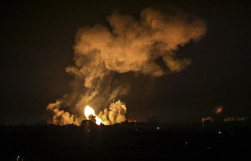 以色列軍方1日表示,白天遭到從加薩走廊發射的兩枚火箭襲擊,晚上針對武裝組織「哈瑪斯」在加薩走廊南部的據點展開攻擊。圖/法新社