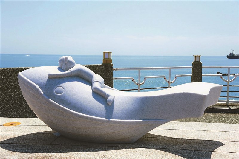 花蓮市藝術裝置〈鯨探號〉,安置在北濱外環道南側人行步道上,相當吸睛。圖/中央社