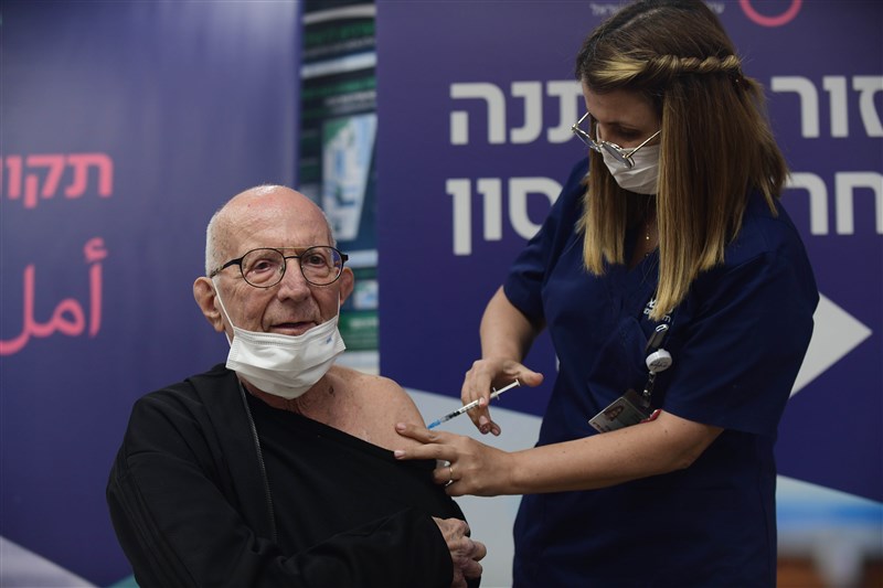 以色列上周批准為療養院內年長者施打第4劑疫苗,圖為去年12月31日以國醫療中心一名長者接種第4劑疫苗。圖/新華社