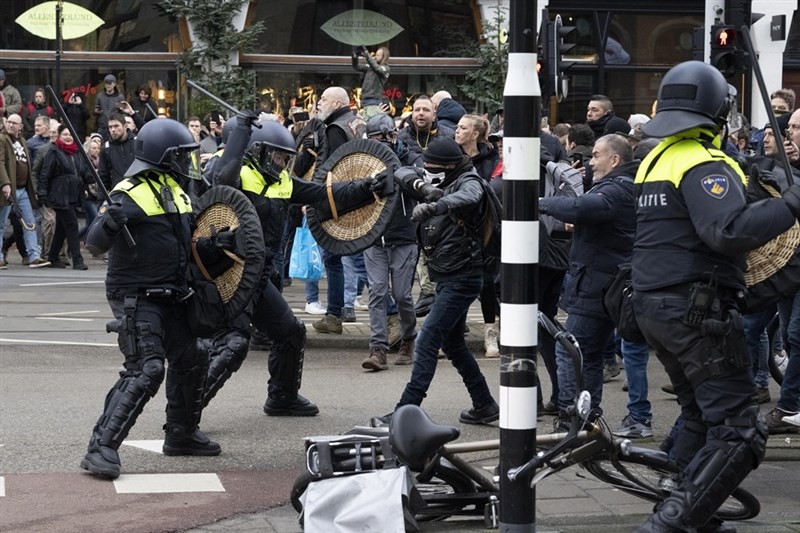 路透社報導,為了遏止感染變異株Omicron的病例壓垮已經不堪負荷的醫療體系,荷蘭實施多項防疫禁令,包括聚會人數不得超過2人等。荷蘭警方發表聲明說,爆發警民衝突期間,4名員警受傷,至少30人上銬後被拘禁。阿姆斯特丹市長哈賽瑪(Femke Halsema)發布緊急命令,清空市中心的博物館廣場(Museum Square),此前抗議民眾違反公眾集會禁令。