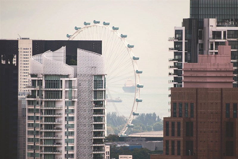 新加坡經濟持續復甦,2021全年經濟成長達7.2%,圖為獅城知名的摩天輪。 圖/新華社