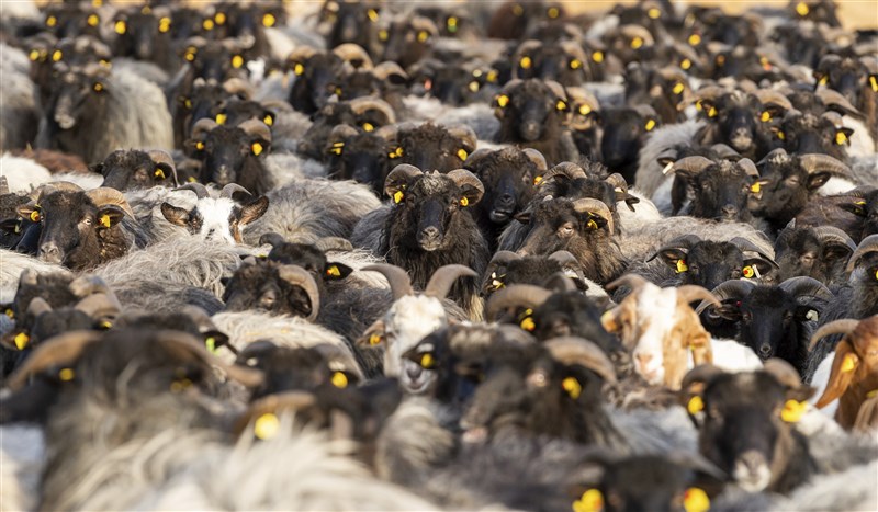 牧羊人施密特-科昌花了數天訓練她的羊群,發現只要在地上撒上麵包塊排成針筒形狀,綿羊和山羊被放出來後,就會自動就位大快朵頤。圖/美聯社