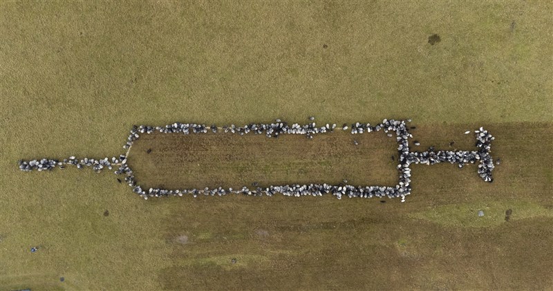 【本報綜合外電報導】為了鼓勵更多民眾接種新冠疫苗,德國一名牧羊人動用她的700隻綿羊和山羊,排出一個巨大的針筒形狀。而讓羊群聽話的秘訣就是:美味的麵包。