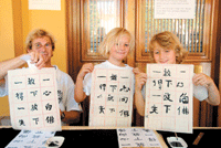 南天文藝季第五天,為讓大眾體驗不同的精神享受,文化活動表演進入高潮,除了有雪梨協會西五分會會員Luke及其友人表演打擊樂器外,並有西塔琴及二胡三人組表演,為文藝季增添些許異國風情;更有來自西澳功德主王永明以重達一公斤、高一百八十公分的大型毛筆現場揮毫,展現中國書法剛勁豪邁的一面,也將書法文化以不同的呈顯方式帶給西方大眾。