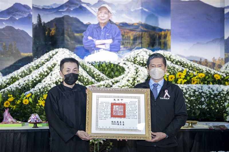 【記者曹麗蕙台北報導】曾獲第31屆傳藝金曲獎出版類特別獎的資深作曲家曾仲影,去(2021)年12月11日辭世,文化部長李永得今(5)日出席追思會弔唁,並代表頒贈總統褒揚令,由曾仲影長子曾英峰代表受贈。