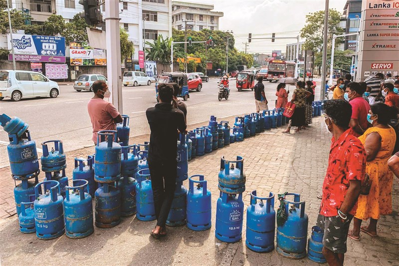 斯里蘭卡民生物資短缺,圖為首都可倫坡民眾四日排隊等著充填瓦斯瓶。