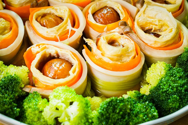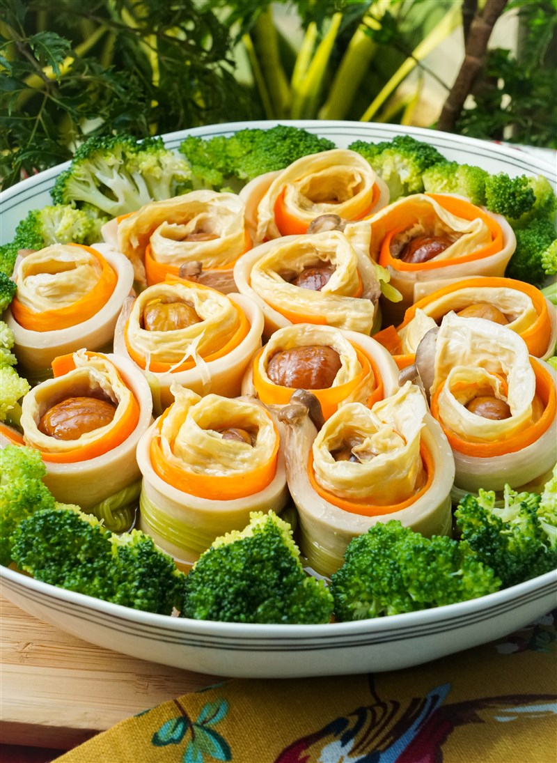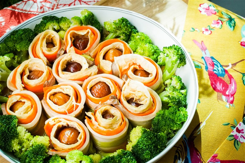 【禪居食堂年菜特輯】杏福福捲 讓你幸福滿滿一整年 張穎容 |2022.01.06 語音朗讀 7140觀看次 字級 大 中 小 杏鮑菇Q彈有嚼勁,搭配紅蘿蔔、豆包和栗子等食材,端出的「杏福福捲」,讓新的一年都能幸福滿滿。圖/記者張穎容 【記者張穎容台北報導】杏鮑菇菌肉肥厚,吃起來Q彈有嚼勁,且料理方式多元,深受婆婆媽媽喜愛,「禪居食堂」第三道年菜料理走精緻小巧路線,利用杏鮑菇、紅蘿蔔、豆包和栗子等食材,端出「杏福福捲」,讓新的一年都能幸福滿滿。杏鮑菇具有低脂肪、低熱量、高蛋白質和高纖維的特性,且富含鉀和磷等礦物質、維生素A、B、C、E,不僅可以幫助減肥,還能抗癌、改善高血壓。紅蘿蔔質脆味美、營養豐富,民眾對它的第一印象就是對眼睛很好,但它其實對人體還有多方面的保健功能,像是降血壓、降血糖、護心臟、提高免疫等,因此被李時珍稱為「菜蔬之王」,也有「小人參」的美譽。此外,紅蘿蔔的類胡蘿蔔素(如β-胡蘿蔔素)和其他植物化學物質,被美國癌症研究所欽點有助抗癌、降低結直腸癌風險,對預防口腔癌、喉癌、肺癌、乳腺癌症也有一定幫助。《看影片學年菜》澎派白菜烘 吃法多樣人見人愛圖/記者張穎容食材(示範影片為4~6人份)杏鮑菇2條(盡量選大條一點的)豆包3塊紅蘿蔔1小塊栗子10顆芹菜鹽油醬油芹菜圖/記者張穎容作法1、杏鮑菇洗淨切寬約0.3公分的長條型,先用電鍋蒸熟放涼備用;紅蘿蔔洗淨,先切成與杏鮑菇長寬差不多的方形,再用刨刀刨成片狀;豆包每片切成4塊長條;芹菜挑掉葉子,並去頭尾後燙熟;栗子洗淨備用。2、砧板上先放上一條芹菜,依序放上杏鮑菇、紅蘿蔔、豆包、栗子捲起來,捲快到底就用芹菜綁兩個結。3、把蒸杏鮑菇的水加半杯水,加入鹽、醬油、油拌勻,淋在杏福福捲上。4、電鍋外鍋加1杯半的水,待電鍋跳起取出。若想擺盤點綴,可以燙些綠色蔬菜擺在外圈。(料理示範/妙具、拍攝剪輯/張穎容、張睿杰)《看影片學年菜》福氣珍珠丸 喜慶團圓吃進福氣圖/記者張穎容 前一篇文章 清潔公司採檢出爐 除7名確診者都陰性 下一篇文章 75歲長者第2劑不到7成 籲盡速接種 熱門新聞 01與精品品牌撞鞋 印度涼鞋打專利戰2025.12.2102銀杏點亮.東京印象2025.12.2303邂逅佛教 安頓身心2025.12.2104【動物奧斯卡獎】猜猜誰最會演(上)2025.12.2105北捷英雄捨身救人 母盼菩薩接引2025.12.2306【守護家人】 為愛築家2025.12.2307社論--瞋恨的危害2025.12.2108【佛教管理學②】人間佛教的「治心十法」⑩2025.12.2109數位科技與信仰交會 推播人間佛教文化2025.12.2210降噪耳機原理2025.12.22 訂閱電子報 台北市 天氣預報 台灣一週天氣預報 相關報導 雪山三六九山莊重建 尋求調解藍白推未來帳戶 拚立院本會期審議 淡水河畔 初冬小花海台東昨6.1地震 氣象署:恐有餘震金門大膽島 年度熱搜景點余家昶捨身救人 明年入祀桃園忠烈祠 作者其他文章佛大榮譽教授曾淑賢 獲圖書館事業貢獻獎永懷星雲大師 南華生命書寫文學獎 得主出列國中科學奧賽我獲4金2銀 全球第2三好校園永平高中 深耕品德教育獲表揚台灣永續大學獎 佛大獲ESG環管領袖獎首屆永續發展國際論壇 探討文化與AI教育