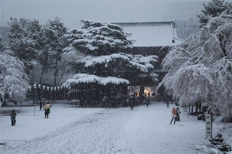受到低氣壓影響,日本氣象廳6日對東京23區、千葉縣、茨城縣南部發布大雪警報,這是東京市中心時隔4年被發布大雪警報。圖/中央社