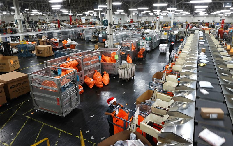 美國郵政總局希望暫時不要強制執行新冠疫苗的禁令,副局長表示,要求員工接種新冠疫苗或每周檢測,傷害郵政總局遞送郵件的能力,也影響全國郵件供應鏈。圖/法新社