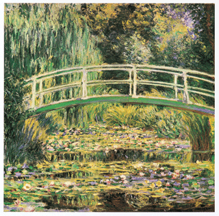 莫內借用東方浮世繪的圖騰,試圖從煩複的現世中,脫去沉重的枷鎖。拱橋代表著一個有起點和終點的生命記憶,而無人的橋面正象徵著記憶的消逝,或者是超越生與滅,開始與結束的二元對待,銷融這標誌著煩惱記憶的圖騰。