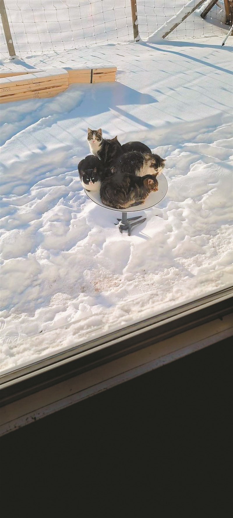 【本報綜合外電報導】一位星鏈(Starlink)用戶日前分享,因為他家中裝有星鏈(Starlink)衛星終端設備碟型天線,而該天線具有「融雪模式」(Snow Melt Mode),在雪天可以發熱,沒想到竟吸引5隻野貓聚集取暖,乍看就像裝了滿滿一「碗」貓。